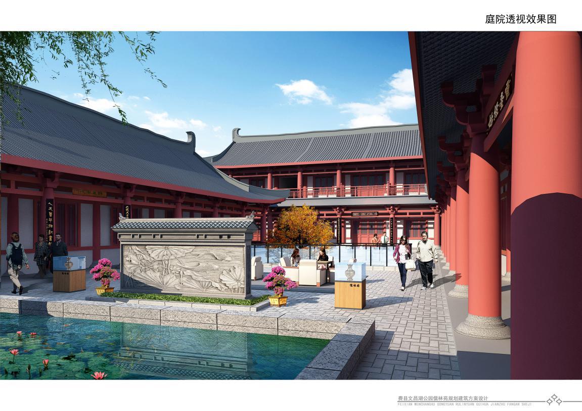 文昌湖公園位于費縣自由路上,地處河邊。而儒林苑則是在文昌湖公園里修建的一處休息用的庭院。該處庭院在設(shè)計初期選擇了多種建筑樣式,最后定格在四合院的建筑風(fēng)格上。