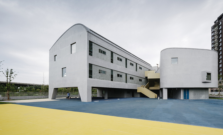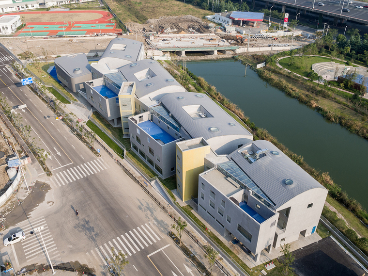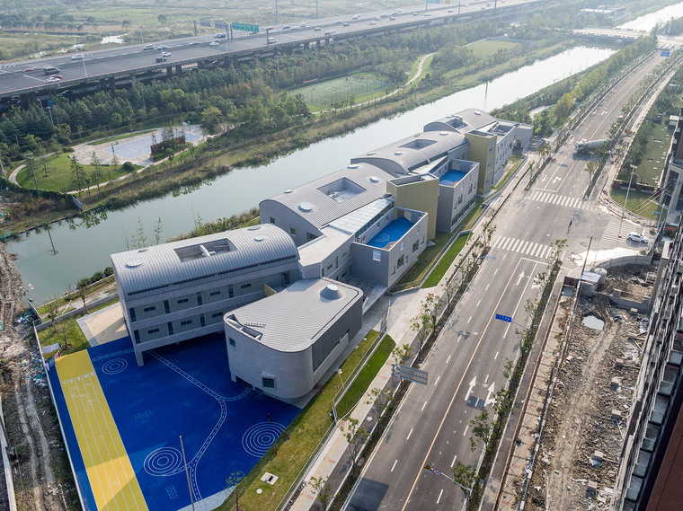 幼兒園是孩子們在成長過程中第一個接觸的公共空間。空間的尺度、使用的靈活度以及室內(nèi)的場景和氛圍,對于幼兒的感受和認知都有很大影響,對于建筑師也是一個挑戰(zhàn)。設(shè)計要能激發(fā)孩子們探索和學習的興趣,同時要給他們足夠的安全感,要有家的感覺。在調(diào)研期間,設(shè)計團隊也發(fā)現(xiàn),非正式空間-如活動室前的走廊-往往是孩子們生活、交往、嬉戲的重要場所。功能、空間與環(huán)境的關(guān)系,是本案在設(shè)計初始所面臨的主要矛盾和核心議題。張江萬科實驗幼兒園位于一個狹長的三角形地塊。基地南側(cè)為中環(huán)路高架與河道綠化,北側(cè)為高層住宅區(qū),東側(cè)為一座跨河道的車行橋,西側(cè)則為一棟需要容納在場地內(nèi)的區(qū)域環(huán)網(wǎng)站。要做出一個回應(yīng)場地限制條件并符合教育局規(guī)范標準的15個班全日制幼兒園,這塊特殊的基地便顯得極具挑戰(zhàn)性。建筑師需要在滿足規(guī)劃指標、使用面積、規(guī)范性、安全性等硬性要求的前提下,在一個相對局促的場地里,創(chuàng)造出符合老師教學管理、誘發(fā)兒童探索心理、和滿足家長預(yù)期的幼兒園。
